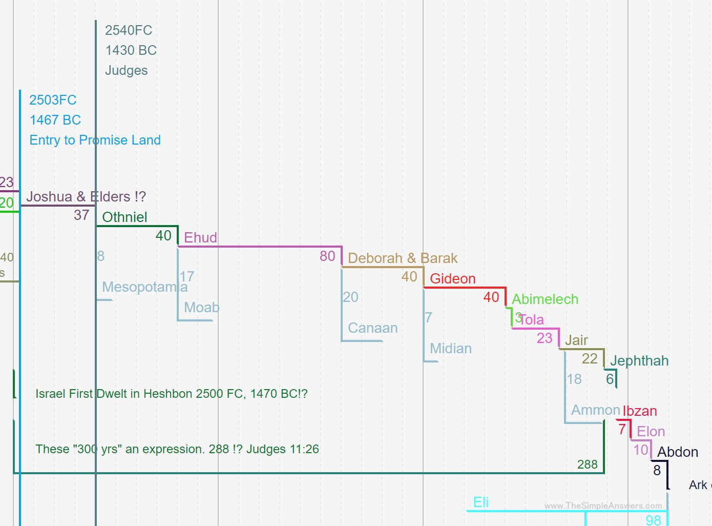 On the accompanying chart, you’ll see that it was roughly 288 years. 300 years was an expression, just as I might say to you “When are you going to pay me the $300 you owe me??” When we both know I only loaned you 288. (Compare Numbers 1:46, and 11:21) The reason I decided upon 288 is explained below.