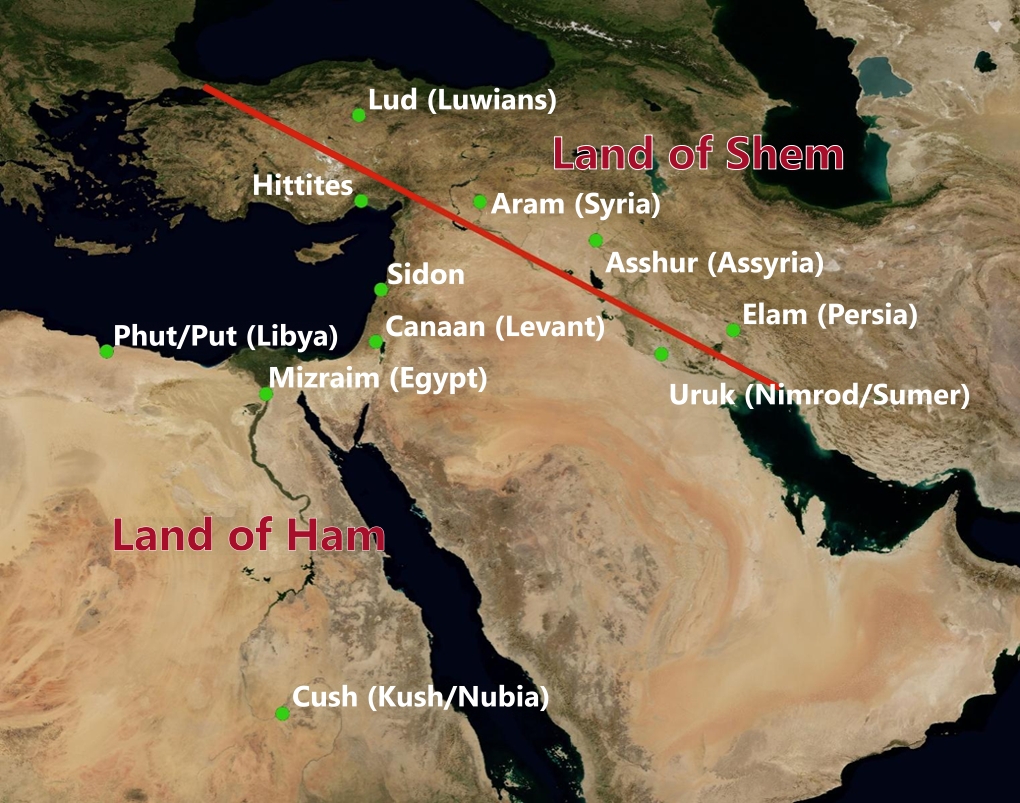 Shem is almost as easy; for his sons were Arphaxad, Elam, Lud, Aram, and Asshur. And one of the great things about taking the Bible as your primary source is that if you just look for these names on an ancient map, you’ll know exactly where these tribes first settled;